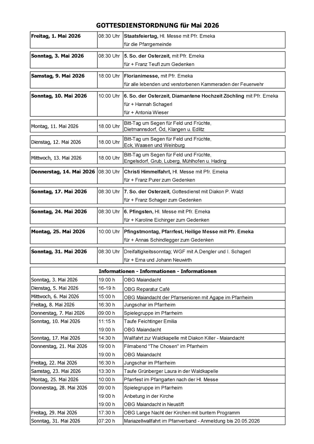 Gottesdienstordnung Mai